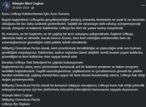 “28 Ekim 2025’te yaptığımız paylaşımda bu kentin ne bir başkente ne de çağdaş bir kent anlayışına yakışmadığını söylemiştik. O gün bizlere kulak vermeyenler, bugün tekerlekli sandalye ile 100 metre bile ilerleyemeyen bu genç kardeşlerimize kulak versinler! Lefkoşa’nın dört bir yanını saran bu ihmalkârlık artık son bulmalıdır.”