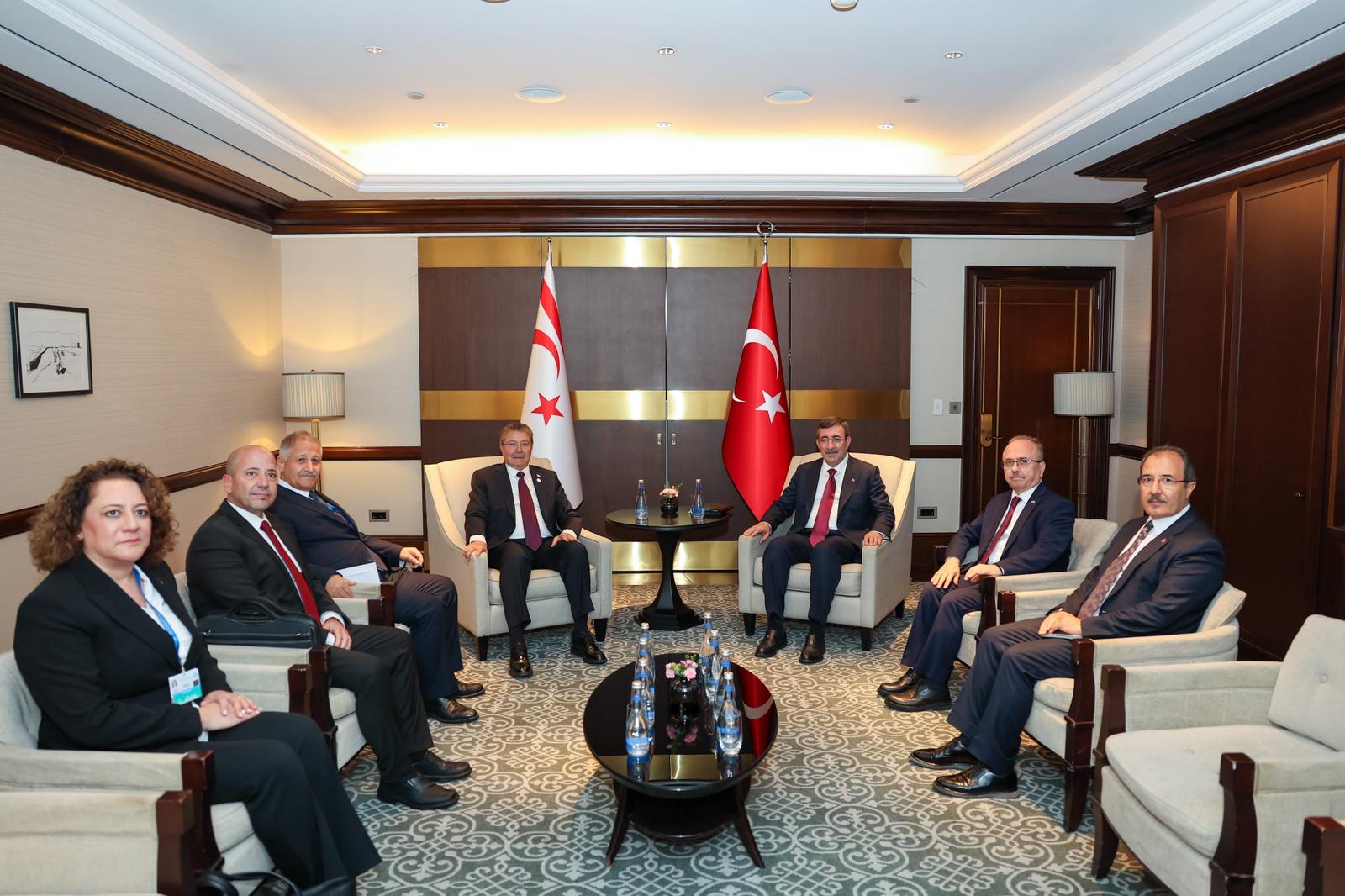 Başbakan Ünal Üstel, Bakü’de yürüttüğü temaslar kapsamında Türkiye Cumhuriyeti Cumhurbaşkanı Yardımcısı Cevdet Yılmaz ile bir görüşme gerçekleştirdi. Görüşme, Türk Devletleri Teşkilatı çerçevesinde yürütülen diplomatik temasların merkezinde yer aldı.